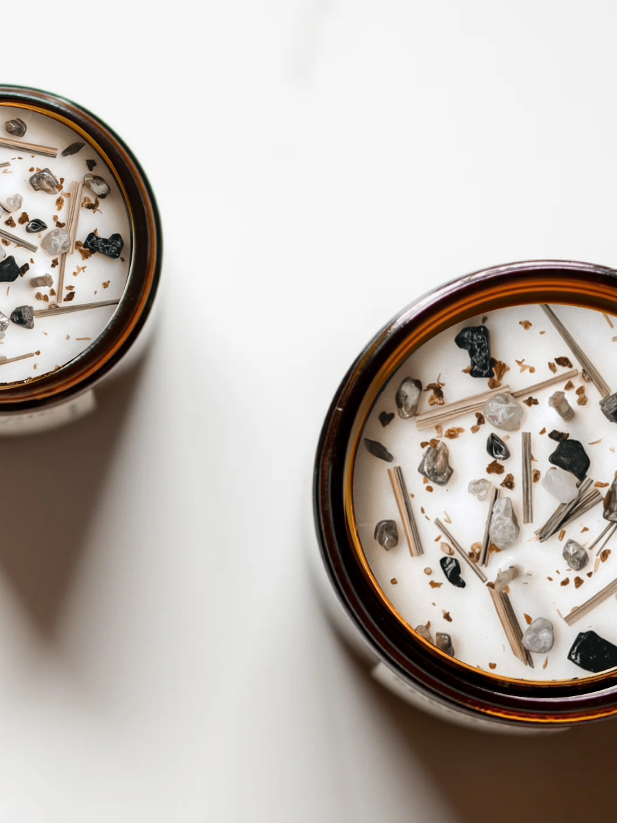 心身を静かに中心へ戻し、深い安定感をもたらすハーバルウッディのフレグランスキャンドル。トップではセージ、オレンジ、グレープフルーツが軽やかに広がり、明るくフレッシュな空気をつくり出します。ハートノートのラベンダーは、ゆっくりとした深い呼吸のように心を整え、内側のざわつきをやわらかく解きほぐします。ラストはアンバー、オークモス、トンカビーンズが温かく落ち着いた大地のような余韻を残し、静けさと安心感のある空間へ。
