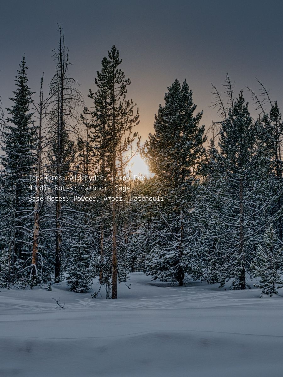 Top Notes: アルデハイド、レモンピール Heart Notes: カンファー、セージ Base Notes: パウダー、アンバー、パチョリ