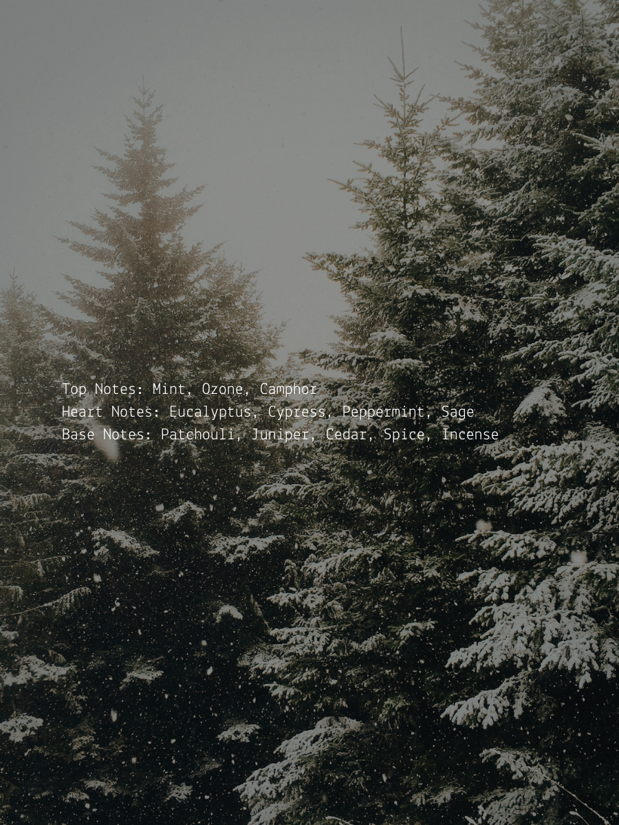 深呼吸したくなるような清涼感と、森の奥へ進むような静かな集中をイメージしたフレグランスキャンドル。トップではミント、オゾン、カンファーがシャープに立ち上がり、空間を一気にクリアに整えます。ハートノートはユーカリ、ペパーミント、サイプレス、セージが重なり、深い森林浴のような落ち着きと、静かに意識が研ぎ澄まされていくアロマティックなアコードへ。爽快感の中に、穏やかな安定感が広がります。ラストはパチョリ、ジュニパー、シダー、スパイス、インセンスが温かく深みのある余韻を残し、自然に包まれるような静寂と整いをもたらします。